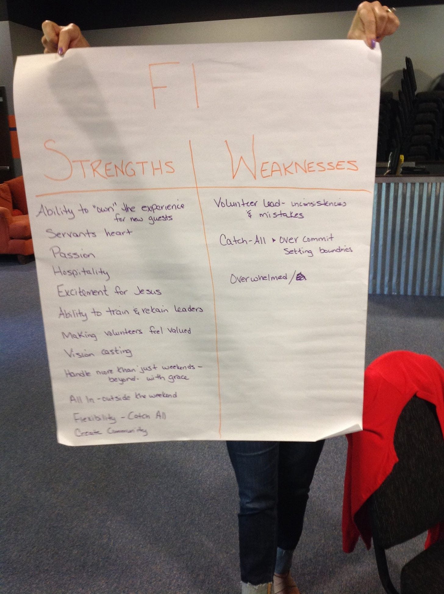 It was our usual staff meeting. We walked into the room and discovered large blank Post-it posters on every wall. Each one had a ministry written at the top, with Strengths on the left and Weaknesses on the right.